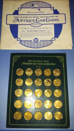 The Antique Cars Coins. 25 piece bronze antique car coin collection in excellent condition. Although these are not technically coins because they lack a monetary value authorized by an issuing authority this is a beautiful set of twenty-five sterling silver medallions issued by the Franklin Mint in.